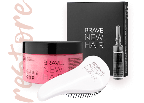 Ампулите представляват концентрат на съставката BRAVE PLEX. Това е малка молекула, която лесно прониква дълбоко в косъма. Формулата на ампулите съдържа ¼ активен състав и дава възможност на BRAVE PLEX да проникне максимално дълбоко в косъма. Нейната цел след навлизане във вътрешността е създаване на нови връзки там, където те са нарушени, както и да оптимизира вече съществуващите. По този начин укрепва спиралните структури в косата, възстановява и я заздравява.
